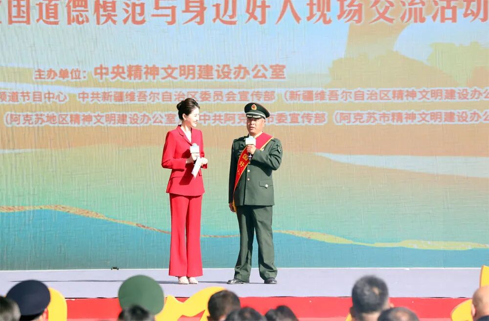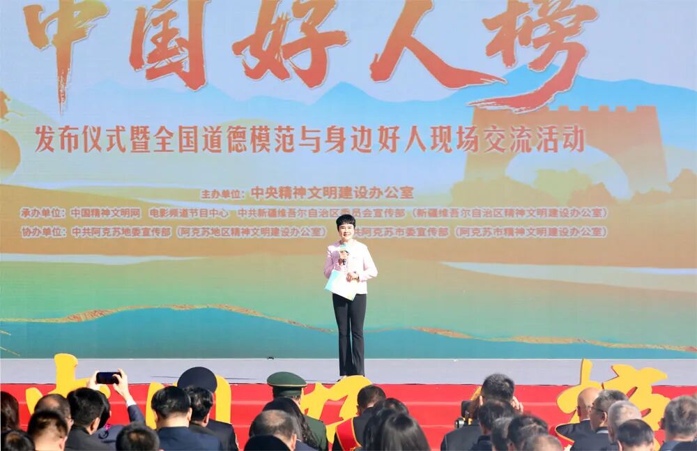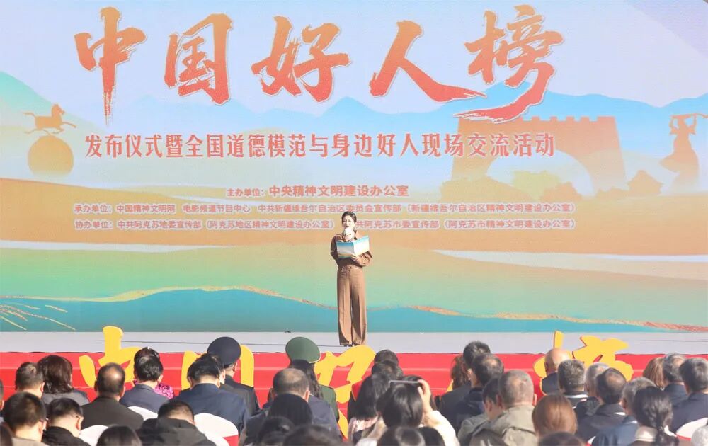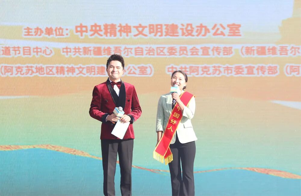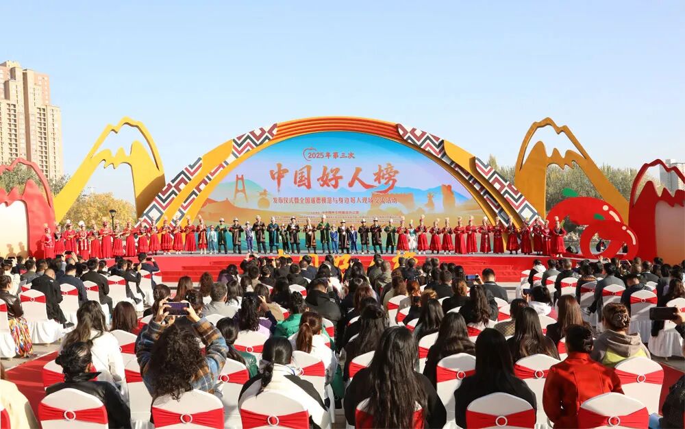 十月的新疆,魅力无限。2025年第三次“中国好人榜”发布仪式暨全国道德模范与身边好人现场交流活动10月15日在新疆阿克苏市多浪河水韵广场举办。