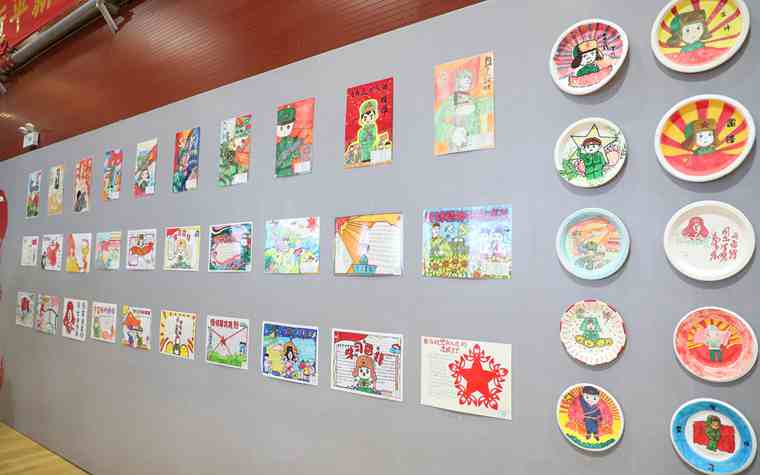 新疆昌吉军分区某部文体活动中心展出的雷锋书画展。