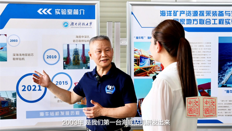 5月22日,中宣部授予万步炎“时代楷模”称号。7月14日,报道组一行来到湖南科技大学海洋实验室,采访被称为“养牛专业户”的深海勘探先锋。采访中,万步炎教授时而言语铿锵,时而语重心长,作为“海牛之父”,他用干劲、拼劲、闯劲、韧劲,一步步改写了我国深海海底钻机技术历史,一步步见证了我国海洋矿产勘探开发技术和装备从落后到超越的攀登。