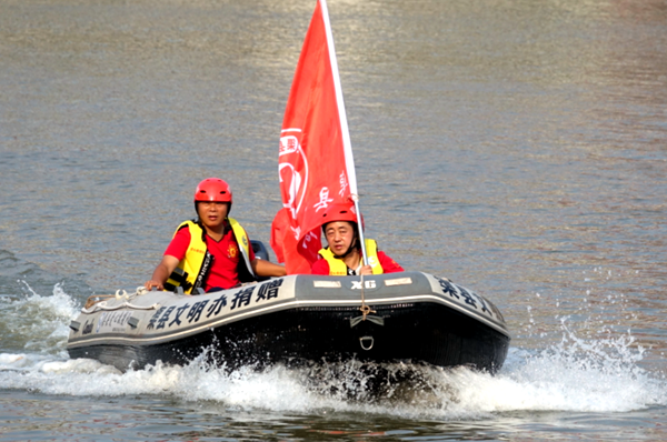 渠县爱心救援队进行水上救援训练。达州市文明办 供图