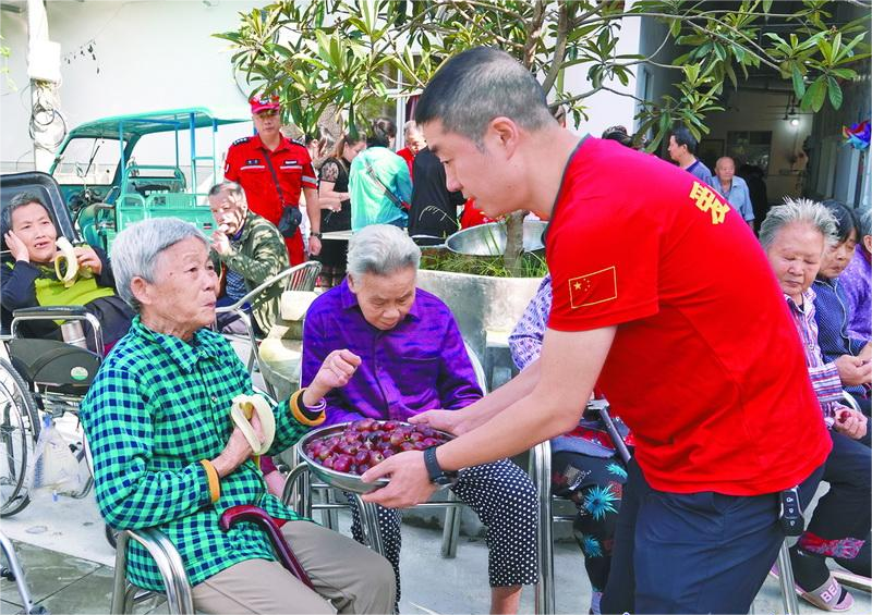 他组织志愿者为全县20余名百岁老人开展义诊服务,给老人们义务编演文艺节目,给全县敬老院送去爱心物资,为老人们打扫卫生、理发、包饺子。