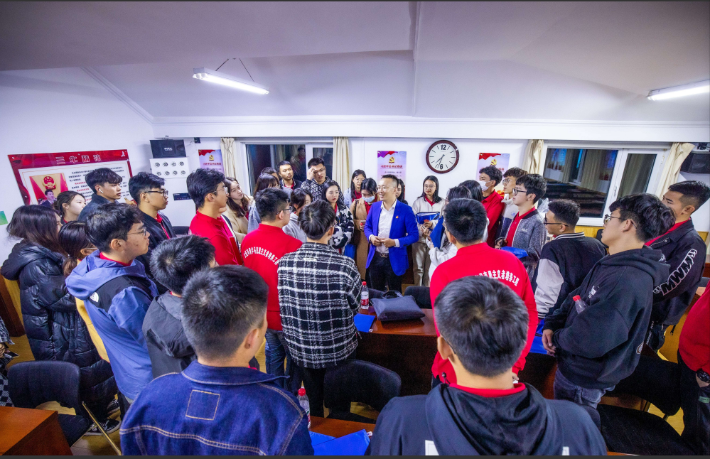 王官升与大学生交流创业公益经验。(图片来源:王官升)