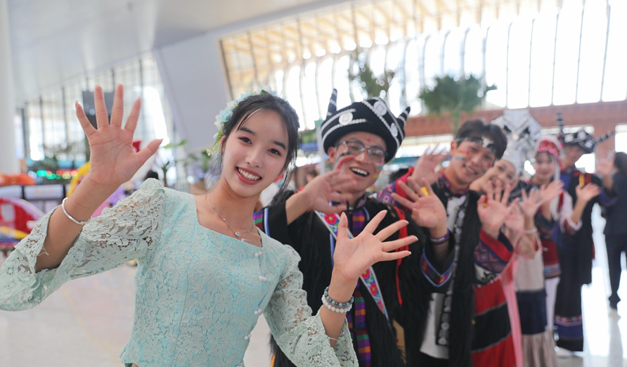 融合了鲜花、绿植、复兴号动车元素的“鲜花会客厅”打卡点,一直以来就备受旅客们的青睐。活动当天,热情洋溢的少数民族打跳、悦耳动听的童声合唱、令人心动的“坐着火车游云南”环线旅游列车推介等,进一步增加了这一“网红”打卡点的魅力,吸引了众多旅客驻足观看。互动环节的干花团扇制作更是人气爆棚,游客们通过亲手制作一把独一无二的团扇,沉浸式与云南“香”约。