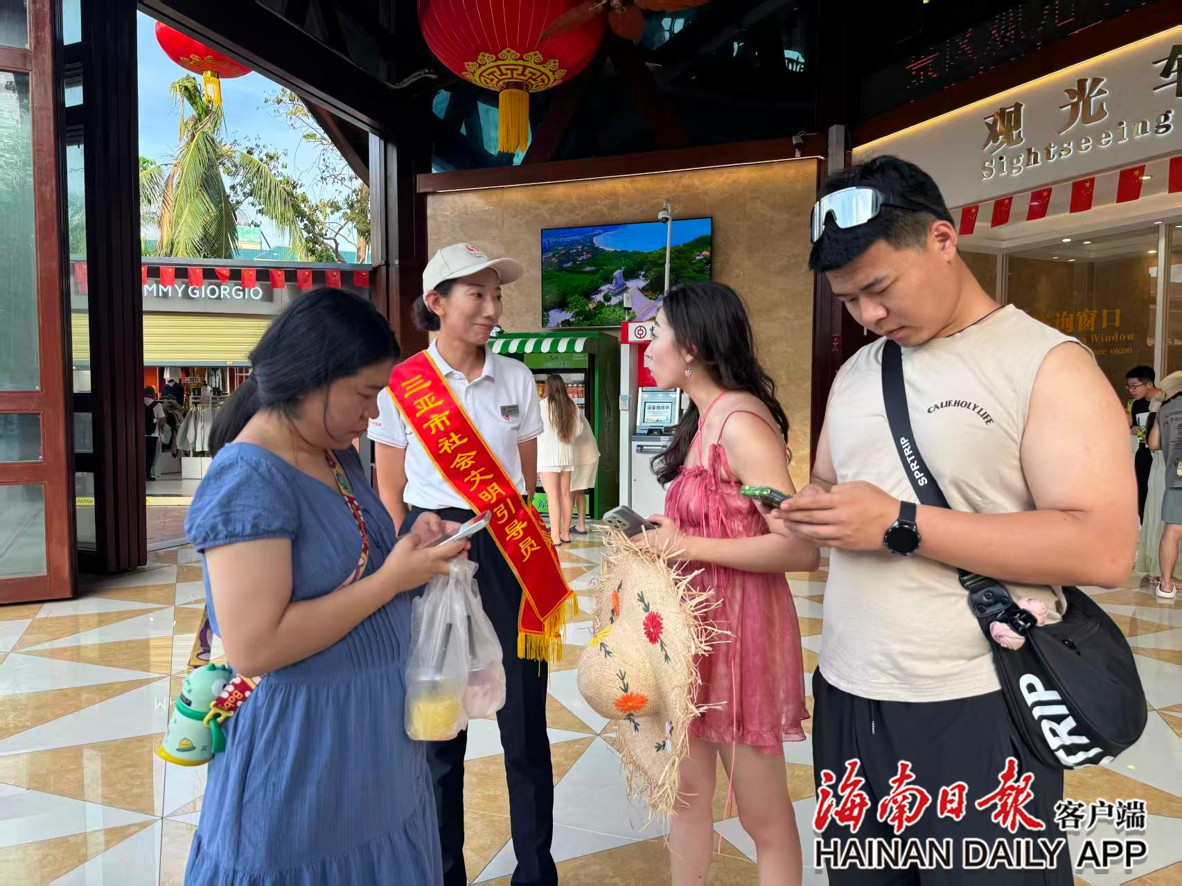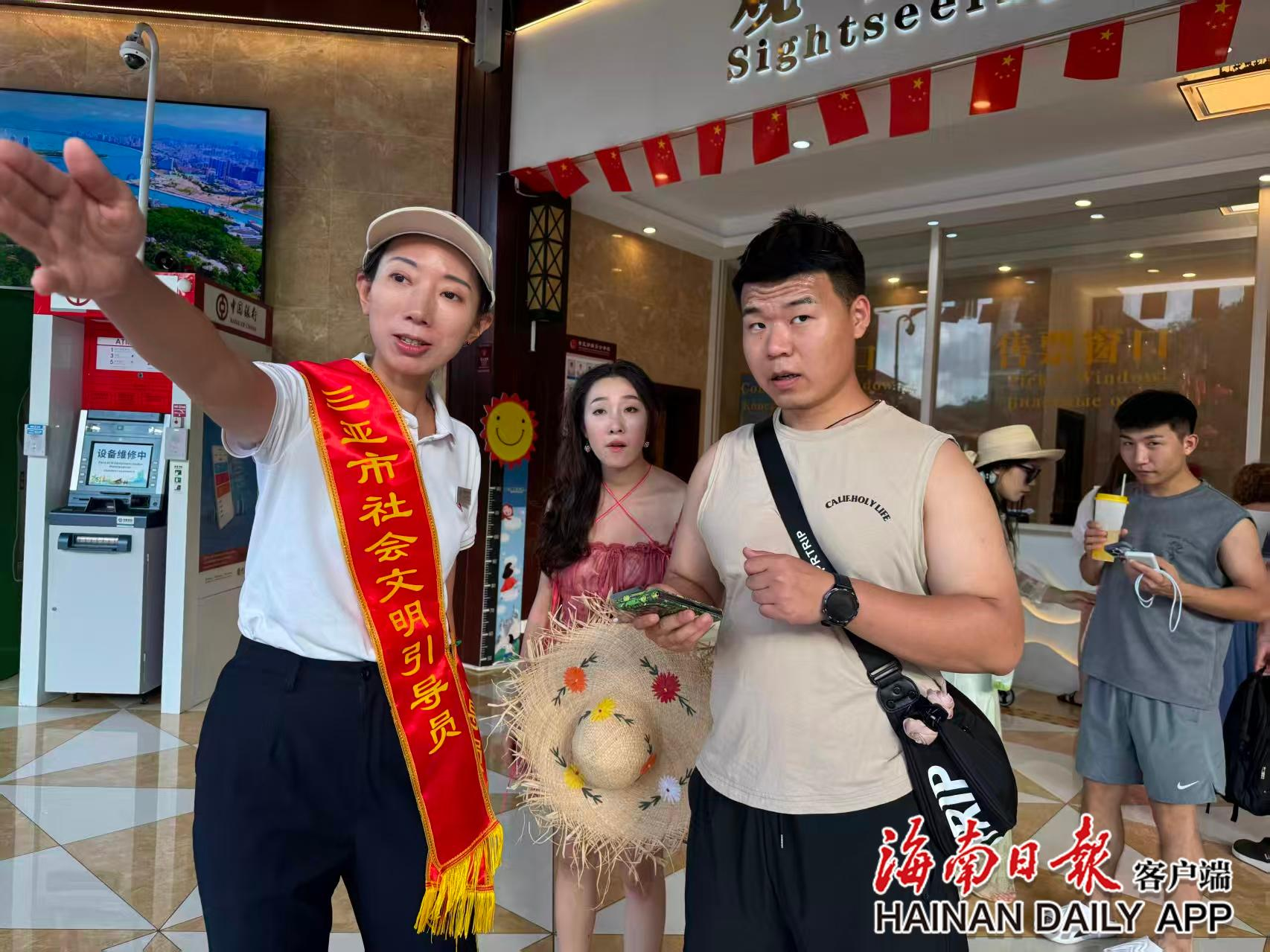 在景区广场,志愿者小陈正微笑着向游客分发文明旅游宣传折页,并介绍三亚的特色旅游资源。“看到我们的微笑,游客也会更愿意配合,自觉维护环境卫生,秩序也更好了。这是一种良性循环。”小陈的感受,道出了“微笑服务”的深层价值——它不仅是服务的态度,更是引导文明、传递友善的有效方式。