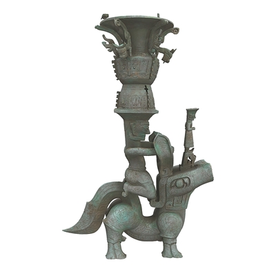 三星堆铜兽驮跪坐人顶尊铜像。资料图片